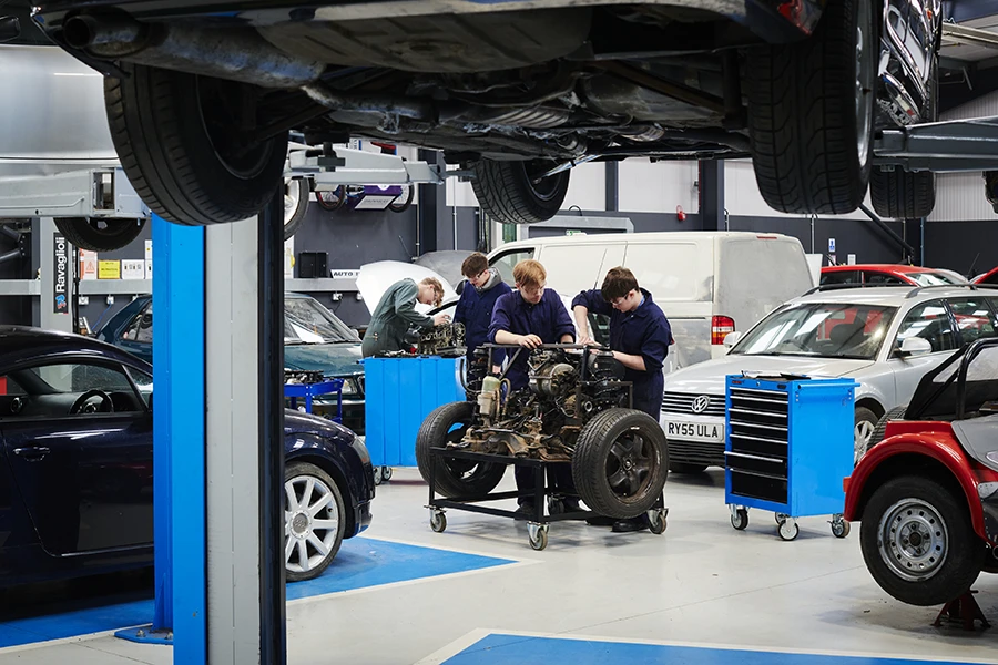 The college owns varied vehicles for students to develop their skills and knowledge. They then progress on to working on vehicles belonging to staff to complete general activities such as servicing, exhaust replacements, wheel balancing, vehicle geometry, diagnostics, as well as valeting. The workshop provides students with ‘real working issues and complications’ in preparation for entering the industry.