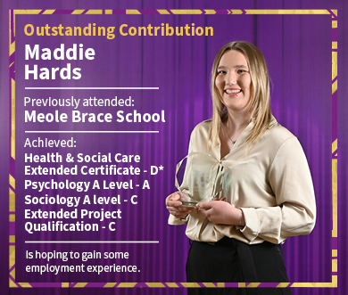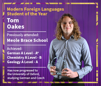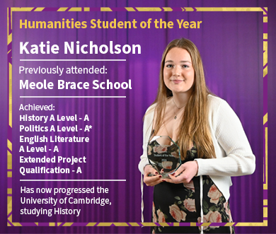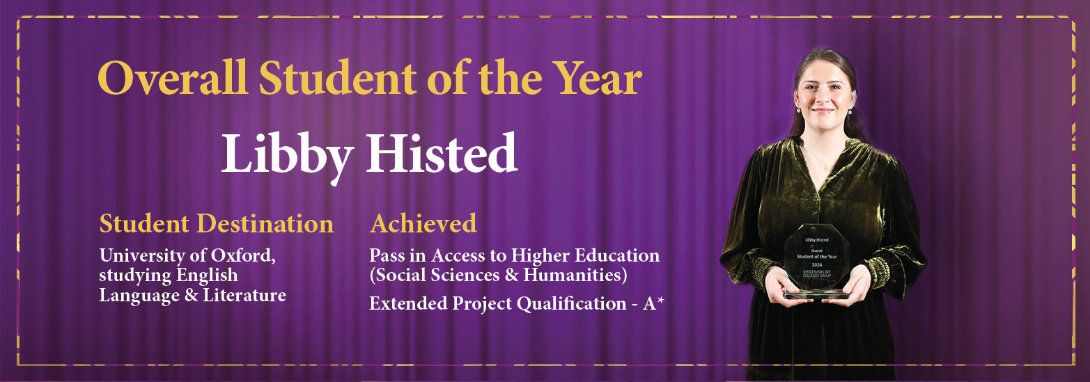 Libby Histed was presented with the Student of the Year award. She is studying English Literature in her first year at the University of Oxford, Harris Manchester College. Libby has had to overcome several challenges throughout her life, but she is an insightful, eager, incredibly engaged, and hardworking student.
