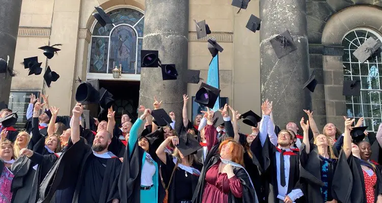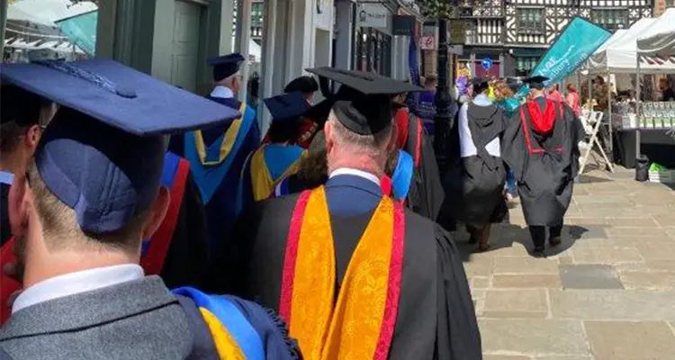 In a brilliant ceremony that began in the town centre, students in caps and gowns were led on a procession through the town, soaking up their moment, before arriving at the historic St Chads Church for a 2-hour ceremony, culminating in the conferral of their qualifications.