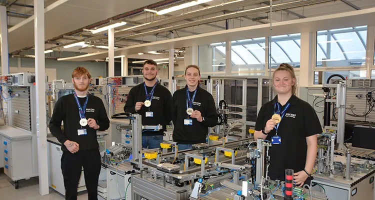 At the WorldSkills competition, Eve Redden, Kieran Rowley, Joshua Wynne, and Kian Beasley (pictured below) showcased their exceptional skills and dedication, earning gold and silver medals in the Manufacturing Team Challenge category. The rigorous competition brought together the best young talents from around the country, making their success a testament to both their individual prowess and the quality of education provided both at Shrewsbury Colleges Group and Ricoh, to whom they are apprenticed.